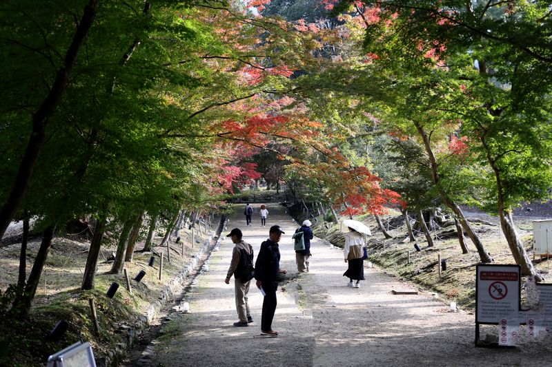 道の左右は広大な空き地、平成30年の台風21号でここの全ての大木が倒れたという。