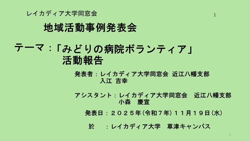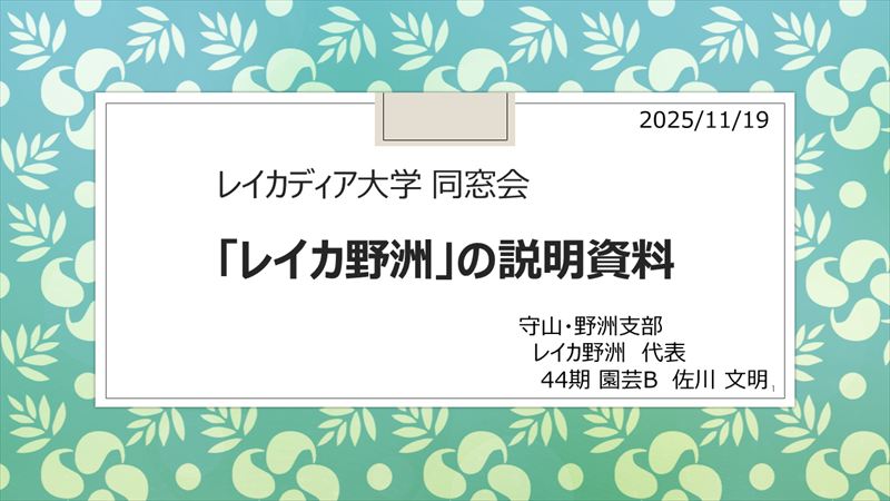 | 第17回(2025年度)地域活動事例発表会が11月19日(水)長寿社会福祉センター大教室で開催されました。 延べ参加者は154名と昨年122名を大幅に上回りました。中でも在学生(46期、47期)15名が参加していただきました。 【総 括】 1.藤田会長からのご意見昨年の発表と比較して記憶しているイメージから、今年は内容も濃くてパソコン資料の出来が 良かった様に感じました。 発表するテーマが無いとの声を聞くことがありましたが、どうして多くの新鮮な内容で纏めてら れていたのと、発表者も堂々として大変良かったです。 2.堀井地域活動部会長からのご意見 ★以下丸い画像をクリックすると動画が流れます。発表者の右側の画像を クリックすると発表資料が見れます。 尚、動画で音声が小さく聞き取れない動画もありますが、ご容赦ください。 (録画時の問題のため、増幅できません。) |