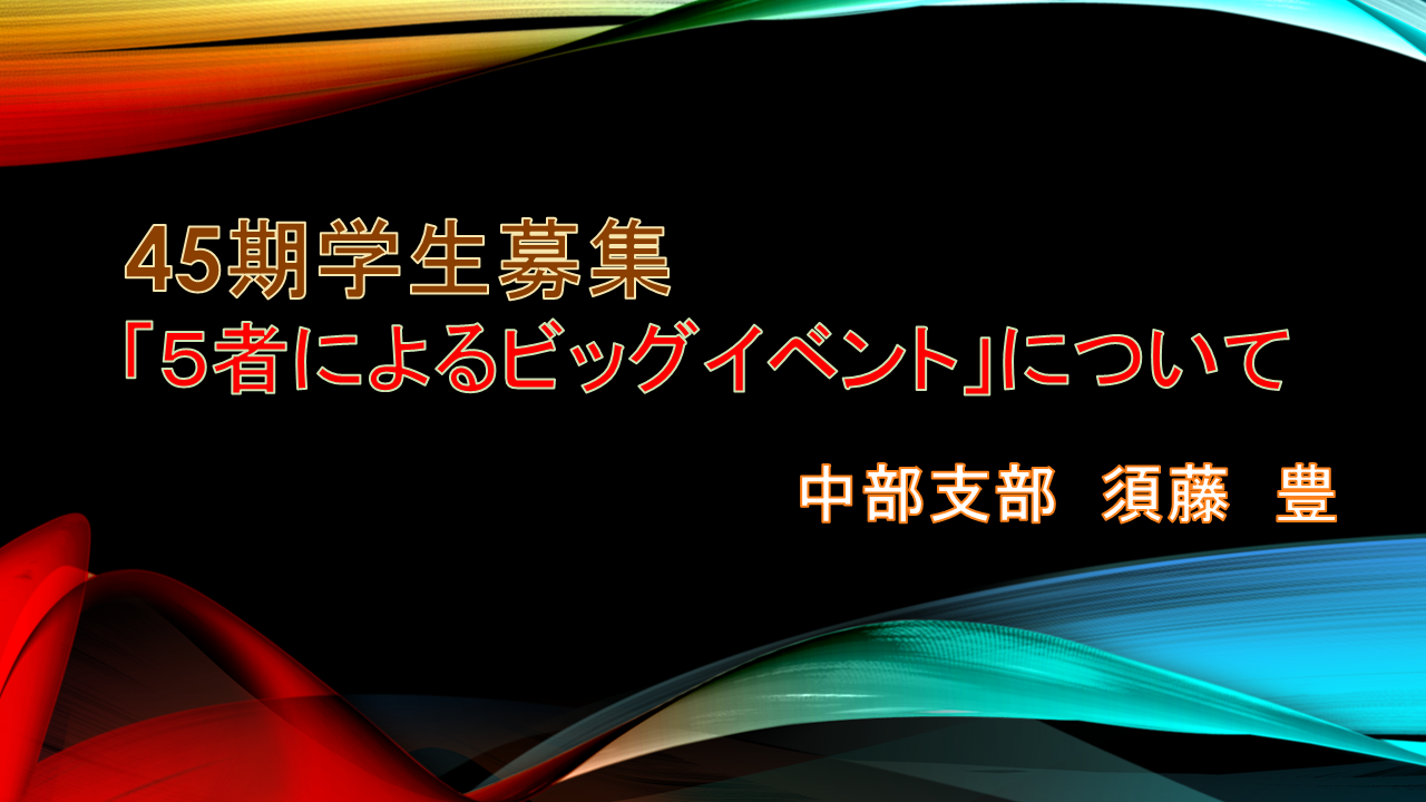アピア八日市を会場に7月6日から5日間「45期学生募集ビッグイベント」と銘打って、中部支部が事務局的役目を担い、アピア八日市、彦根サポートの会、大学事務局、えにしの会の5者でイベントを展開した内容と、中部支部では初めての作品展を実施した結果を報告する。 |