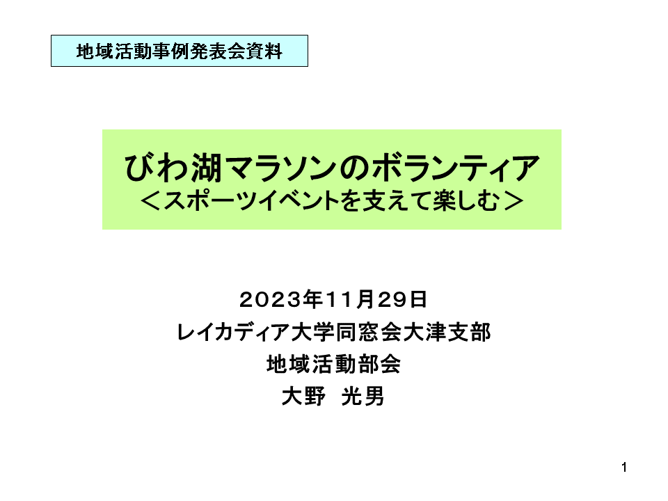 2019年からスポーツイベントでの競技・観戦環境を整えて成功に導くボランティアをスタートしています。滋賀県指定管理の公益財団法人滋賀レイクスターゲームコンダクターに登録され びわこ毎日マラソン3回、びわ湖マラソン1回に参加し延156人が参加しました。その他オリンピック聖火リレーに29名が参加し、在校生と共に楽しく活動しています。 |