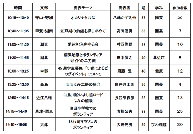 発表プログラムと支部ごとの参加者![]() |