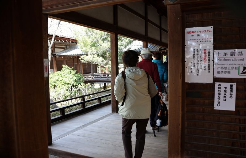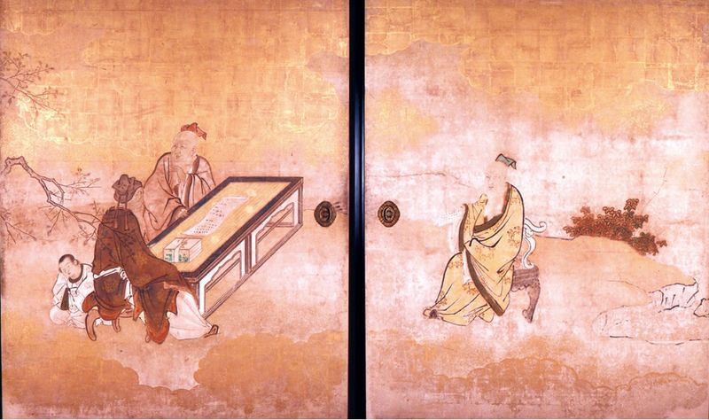| 動く襖絵 左から右に歩いていくと描いてある机が向きや大きさを変えたように見えたり、子供が成長して見えたり、鳥や鯉が向きを変えたりなど、逆遠近法によるだまし絵の世界 |