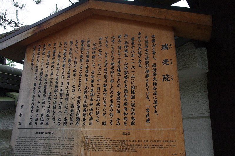 | 忠臣蔵ゆかりの寺 赤穂藩家老・大石内蔵助が切腹した赤穂城主・浅野内匠頭の短刀と衣冠を埋めた供養塔がある 大石内蔵助ら赤穂義士が切腹した際にはその遺志に従って、浪士の遺髪塔が供養塔の側に建てられた |