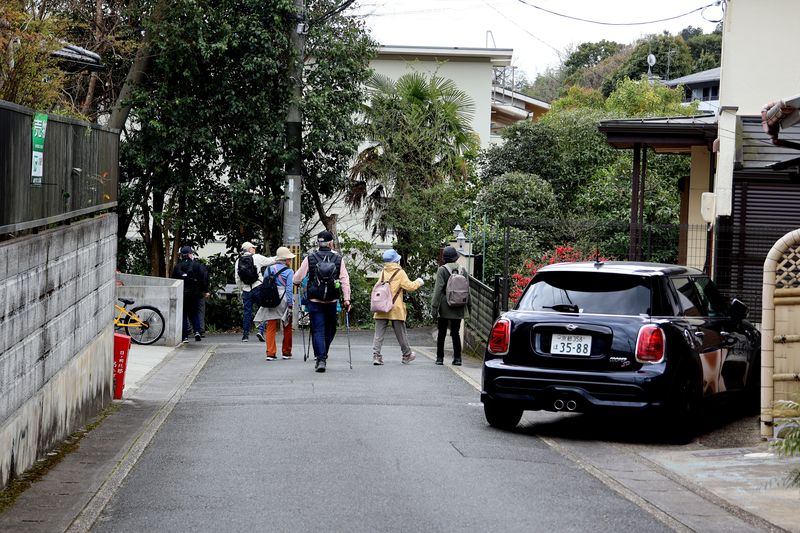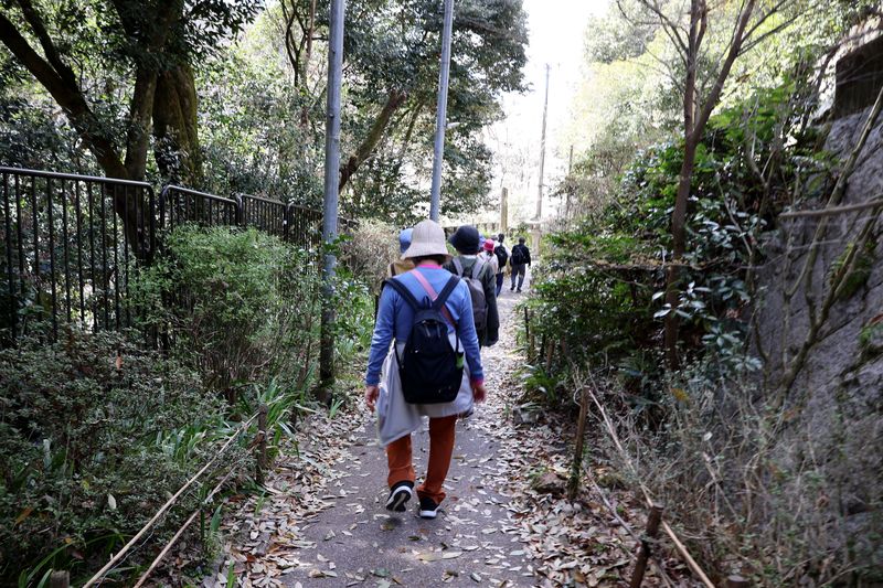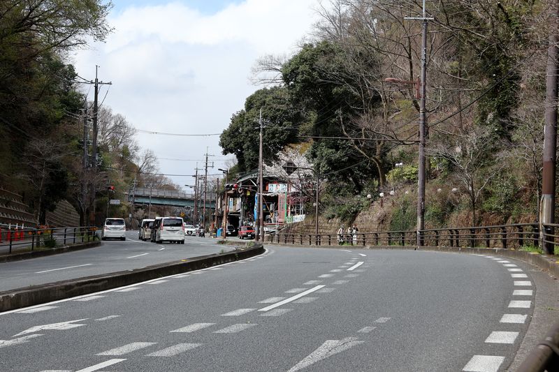 | 当初、この辺りの日ノ岡の峠道は、大津から京都への難所の一つで、牛車の通る車道は深くえぐられて、人馬が通る道との段差が生じ、雨が降るとぬかるんで牛車を立ち往生させていた。 |