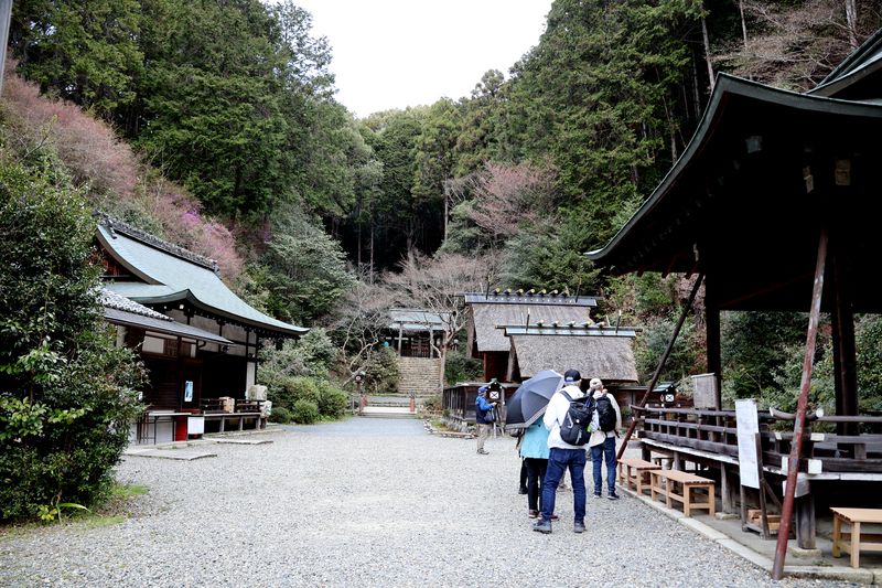 | 開運、厄除、縁結びの神として知られる神社。5世紀末、第23代顕宗天皇の時代に、筑紫の日向の高千穂の峰の神蹟を移したのが起こりと伝わる。その後、天智天皇が神田を寄進し、神域の山を日御山(ひのみやま)と名付けた。応仁の乱(1467〜77)で焼失したが、篤志家が社殿を造営し、更に慶長19年(1614)の再建には徳川家康により失った社領も戻された。人が一人通り抜けられるぐらいの穴を持つ岩「天の岩戸」も有名。その角にある戸穏神社に参拝して、天の岩戸を通り抜けると、罪やけがれが清められるといわれている。 |
