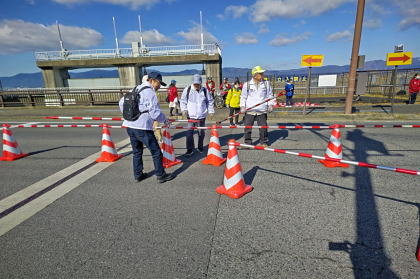 | 2025年3月9日(日)「びわこマラソン2025」にコース整理ボランティアとして、守山・野洲支部から17名が参加しました。好天に恵まれて、コースのセンターポールの配置や、片付け、歩行者誘導など、午前8時30分~午後2時頃まで、SGグループ保養所、佐川美術館付近の33km地点から35km地点付近を担当しました。我が守山・野洲支部は今年は第65ブロックと、第66ブロックの2ブロックに分かれて活動しました。今年で、このボランティアも3年目になりました。来年も、県からの要請があれば、参加したいと思います。 |