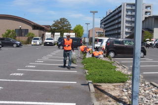 | 図書館裏の草引き | 駐車場の草引き |