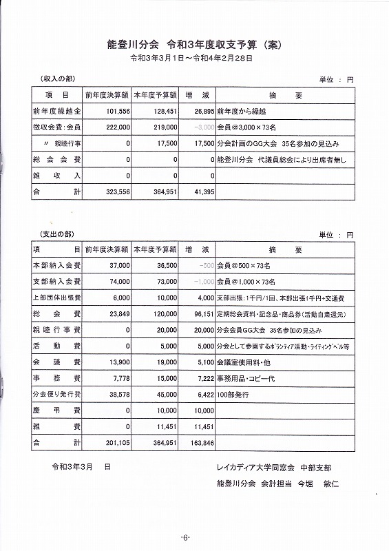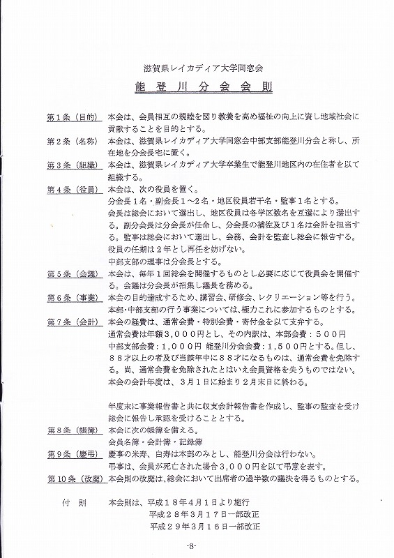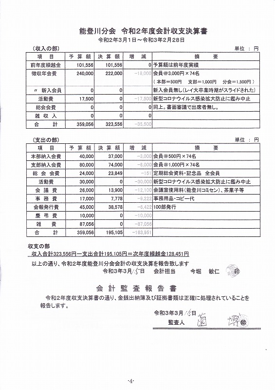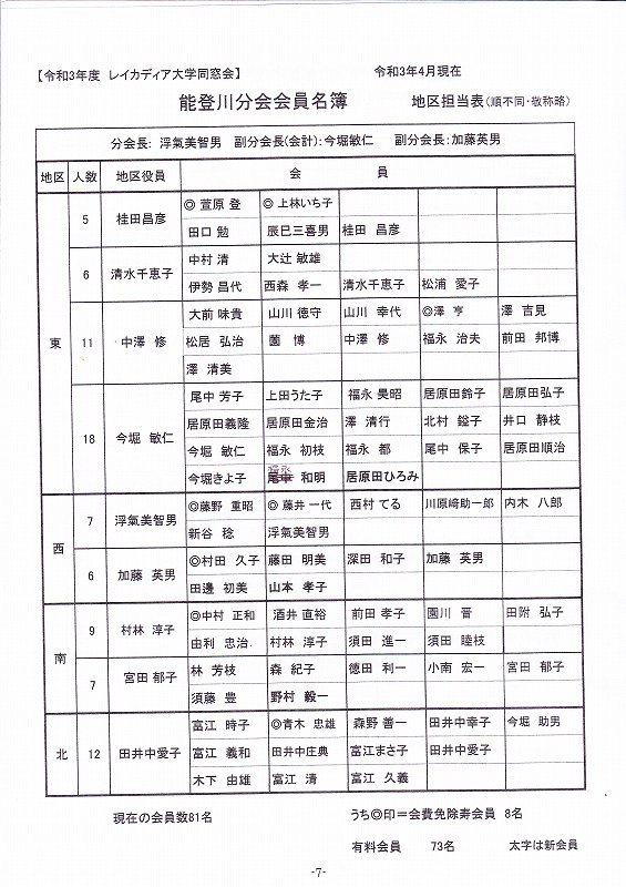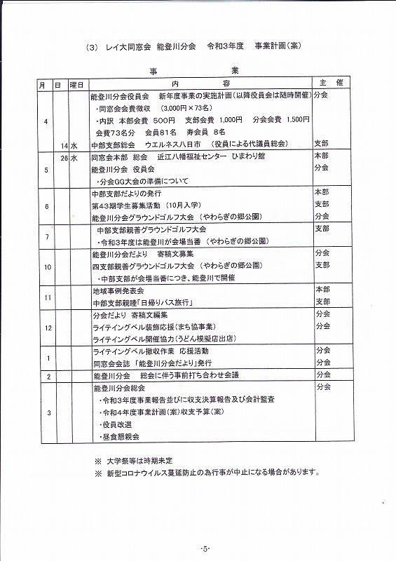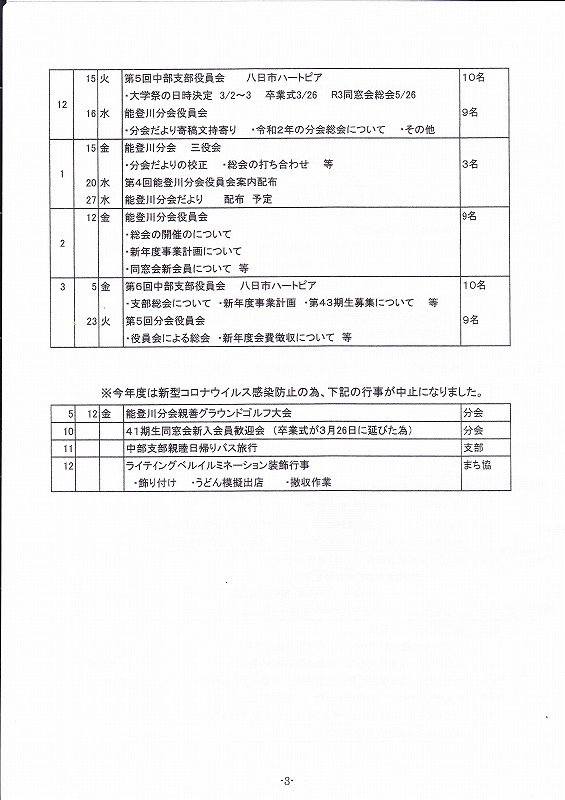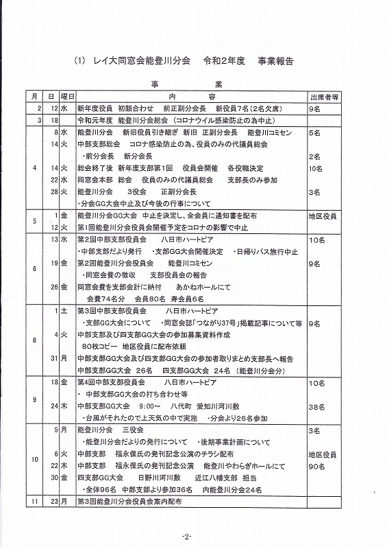 能登川分会 令和2年度 同窓会総会