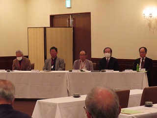 | 湖北支部の歴代の支部長6名の方に集まっていただきました 後列 奥長 裕幸 様 中川 豊太郎 様 馬場 壽夫 様 前列 北村 喜代嗣 様 大塚 忠夫 様 桐畑 実 様 |