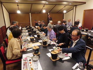 本年度湖北支部には、15名の新会員を迎えました。その方々に歓迎会が「レストランおりひめ」で行われました。 当日は、新規加入者12名・幹事や役員など12名の計24名の出席者で賑やかに行われました。支部長挨拶、前支部長の 乾杯の音頭のあと歓迎会が始まりました。そのあと新会員の方の自己紹介や役員等の自己紹介がなされました。 一人1分程度という時間制限でしたが1分では収まらず、会員の方のいろいろな姿を知ることができました。その後も会員同士の 和気藹々とした交流の場が続き、非常に楽しい2時間を過ごせました。最後は奥長相談役の一本締めでお開きとなりました。 新しい方を迎え湖北支部も139名の会員となりました。今後も湖北支部として様々な事業が計画されています。新会員も 含め、多くの会員の皆さんが参加されることを期待しています。 |