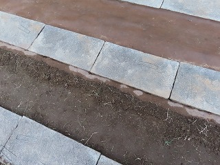 | 防草のため散布された真砂土 | 防草シート作業 | 張られた防草シート |