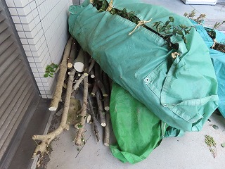 | 樹木剪定① | 樹木剪定② | 搬出された剪定材 |