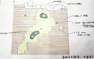| 整備前の中庭 | 整備案図 | 整備工事の案内板 |