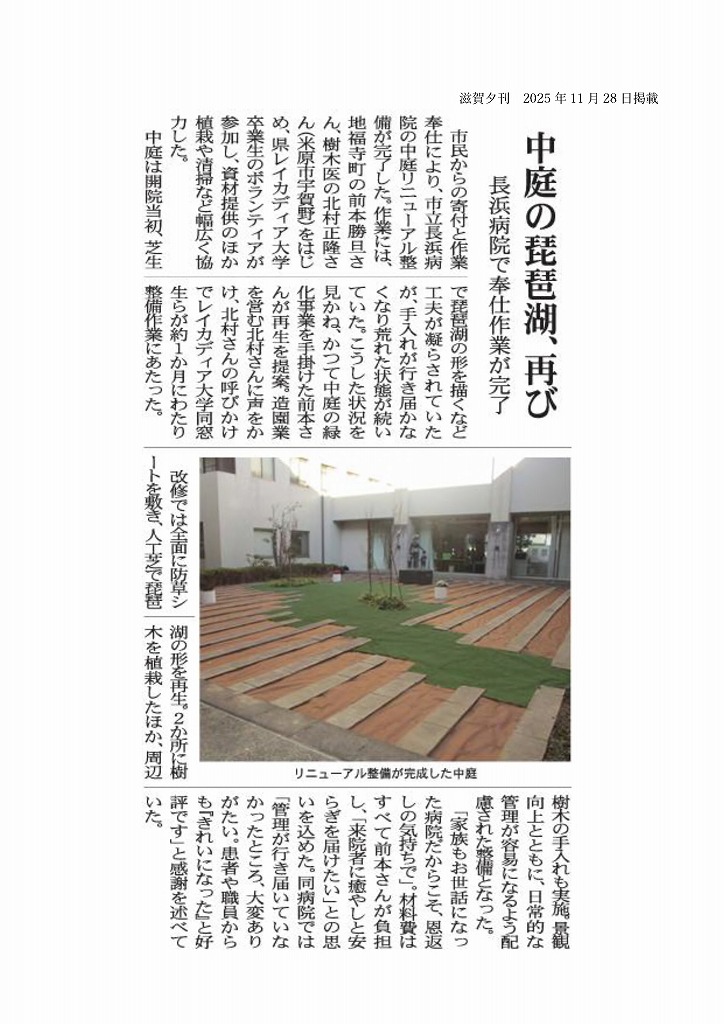 日 時 令和7年10月28日~11月20日 延べ 7日 内 容 長浜市立病院中庭整備作業 |