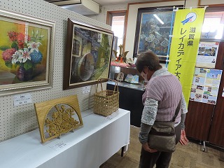 | 今年初めて湖北支部の作品展が開催されました。会期は5月12日(月)~18日(日)の1週間で、河毛駅コミュニティハウスで展示が行われました。 比較較的コンパクトな会場でしたが、卒業生16名の45点もの数多くの作品が展示されました。写真、絵画、木工、パッチワークなど、どの作品も力作 ぞろいでした。河毛駅の待合室でもあり、レイカディアの関係者だけでなくJRの利用者の方にも見ていただけたのではないでしょうか。 滋賀夕刊で紹介されたこともあり、多くの地域の方にも来ていただけました。また、湖北支部だけでなく他支部の方もたくさん来ていただき大盛況 でした。芳名録に記入していただいた方だけでも100名近くにもなりました。 支部の会員にはいろんな趣味を持っている人がいます。会員の趣味活動の発表の場と会員同士の親睦を深める良い機会になったのではないかと 思います。 |