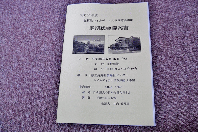 レイカディア大学同窓会本部定期総会 2018/05/16